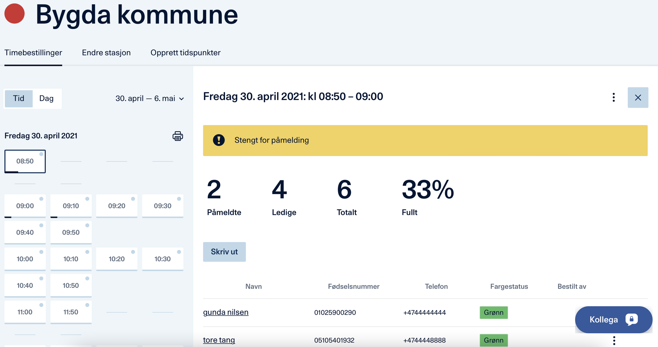 Dere kan sette opp så mange timebøker dere vil, for eksempel for ulike vaksinestasjoner, for hver enkelt lege på et legekontor, og så videre.